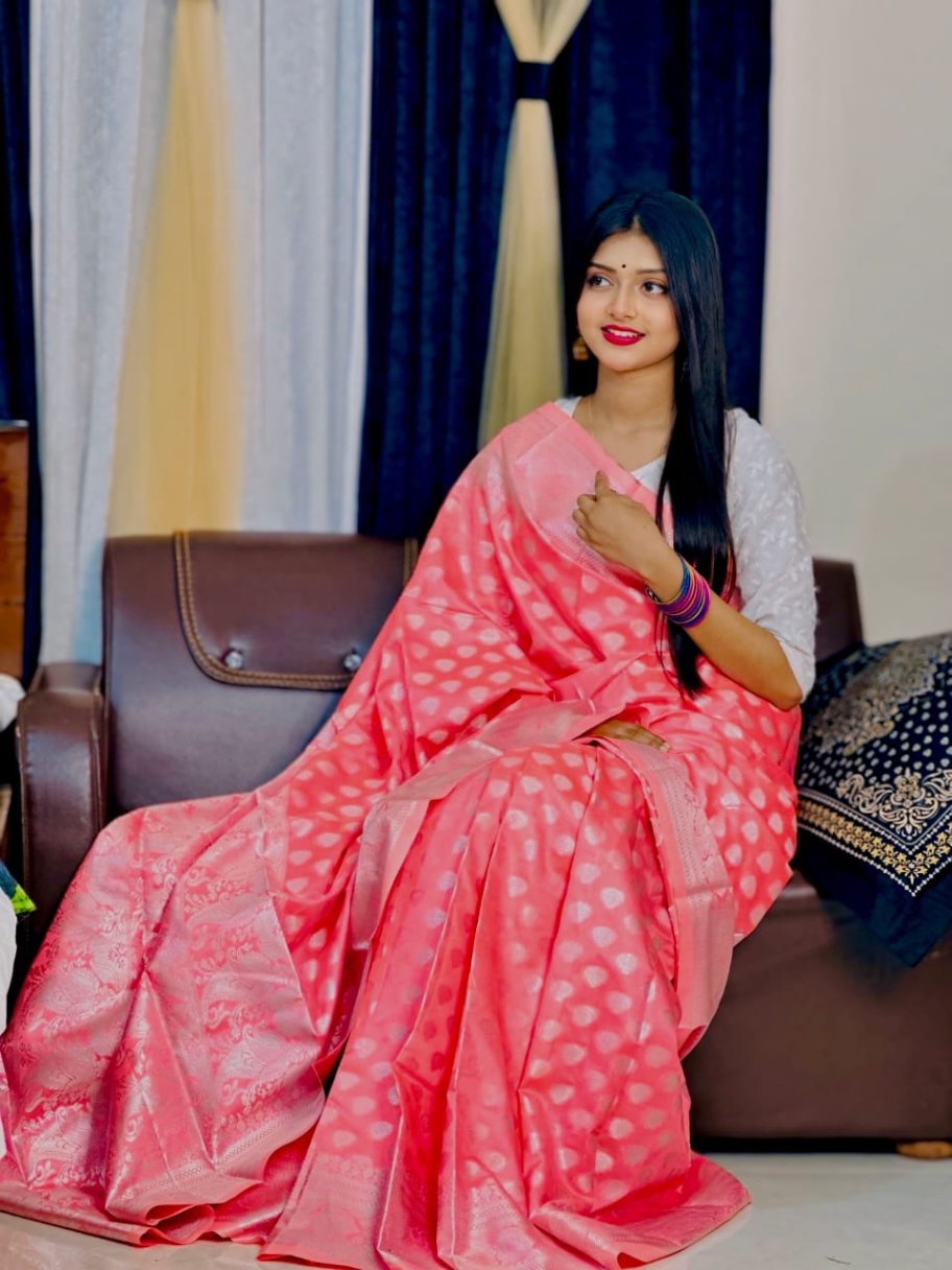 - ব্লাউজ পিস দেওয়া নেই। আপনি ইচ্ছামতো যেকোনো কনট্রাস্ট বা ম্যাচিং ব্লাউজের সাথে এই শাড়ি পরতে পারেন।