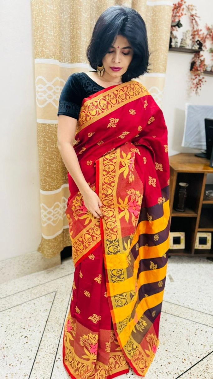 তাঁতিদের বানানো প্রিমিয়াম কোয়ালিটির সুতি শাড়ি।