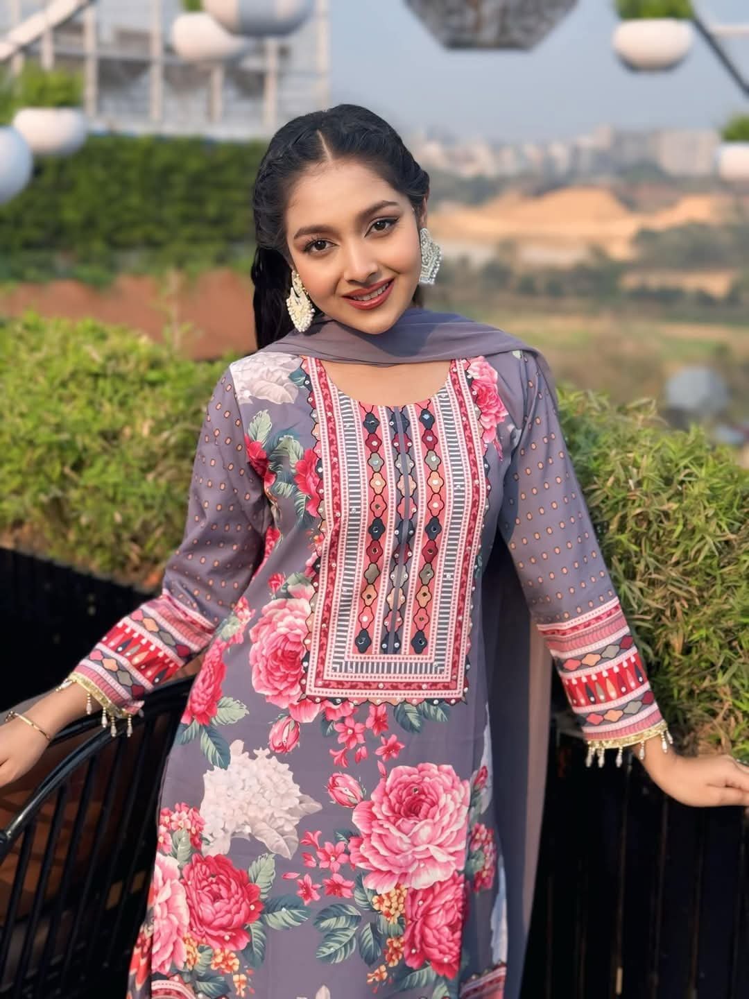 মাইক্রো সিল্ক কাপড়ে ডিজিটাল প্রিন্ট কাজ করা রেডিমেড থ্রী পিস।