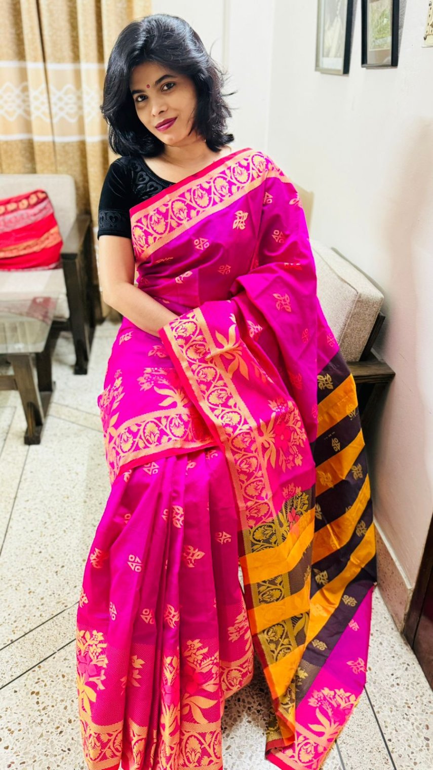 তাঁতিদের বানানো সিল্ক কাতান শাড়ি