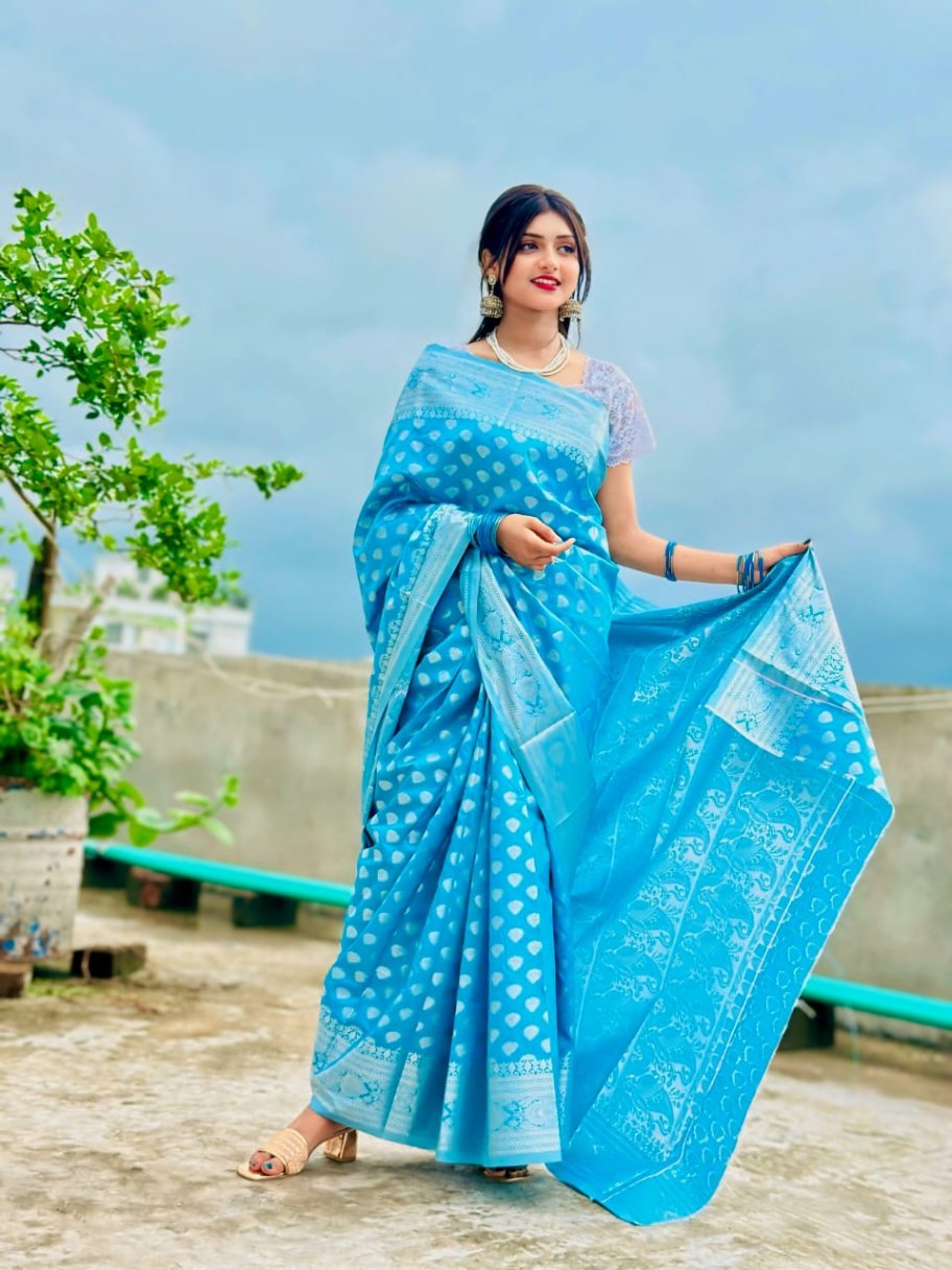 - ব্লাউজ পিস দেওয়া নেই। আপনি ইচ্ছামতো যেকোনো কনট্রাস্ট বা ম্যাচিং ব্লাউজের সাথে এই শাড়ি পরতে পারেন।