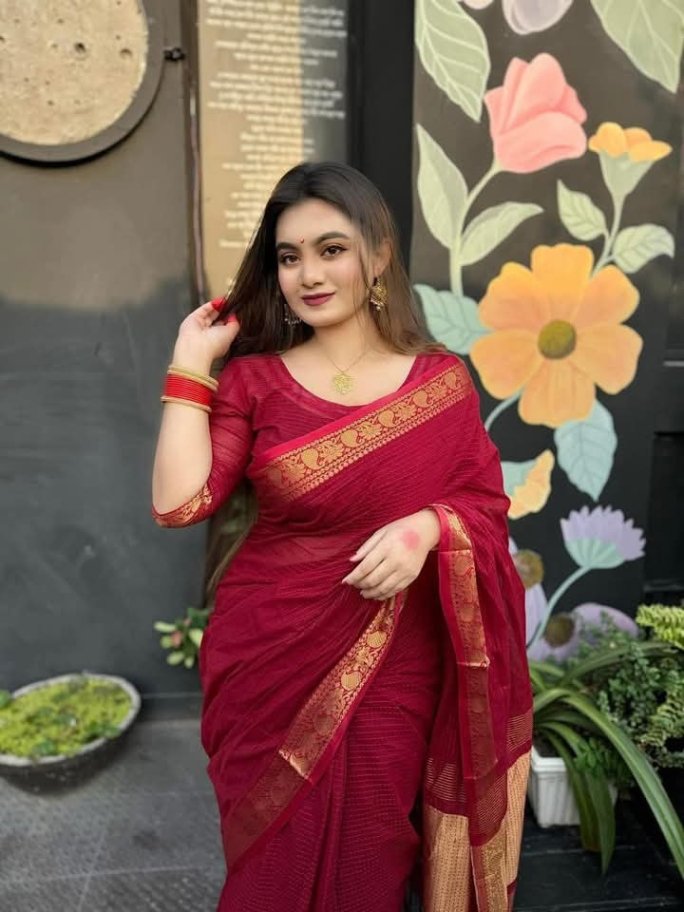খুবই সুন্দর কটন চেক শাড়ি,এটাকে কাঁথা সেলাই শাড়িও বলে,সাথে রানিং ব্লাউজ পিস দেওয়া আছেl