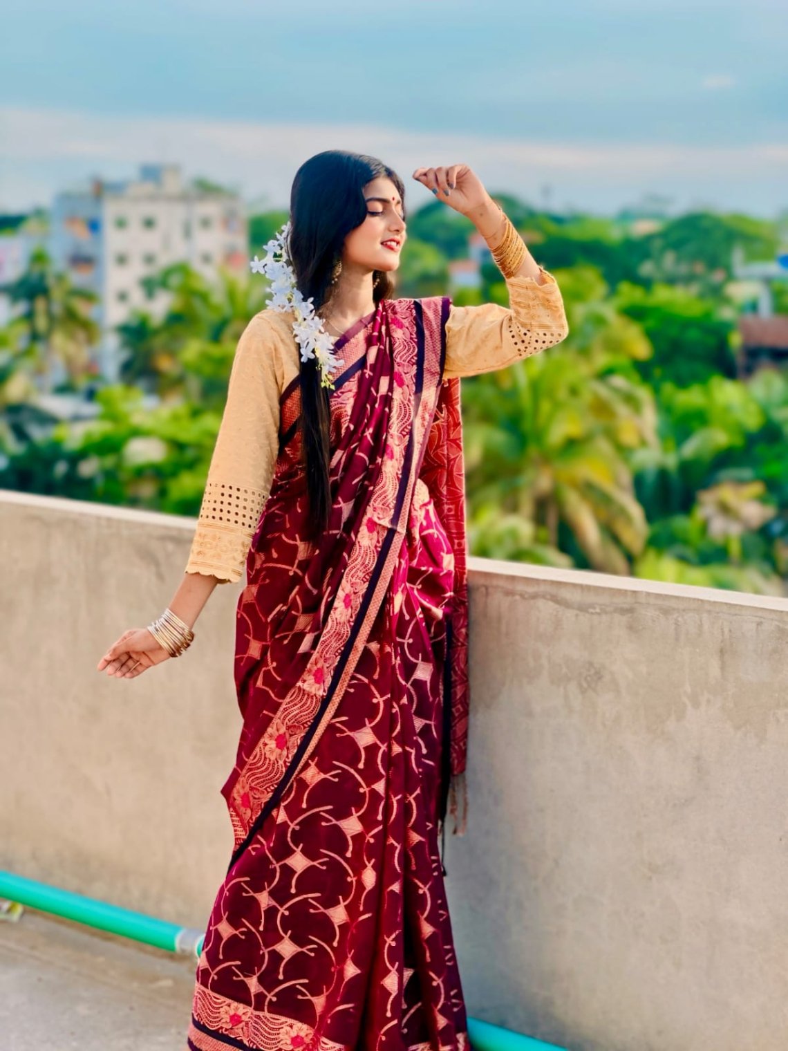 খুবই সুন্দর ও চমৎকার একটি শাড়ি যেকোনো অনুষ্ঠানের জন্য পারফেক্ট একটা শাড়িl